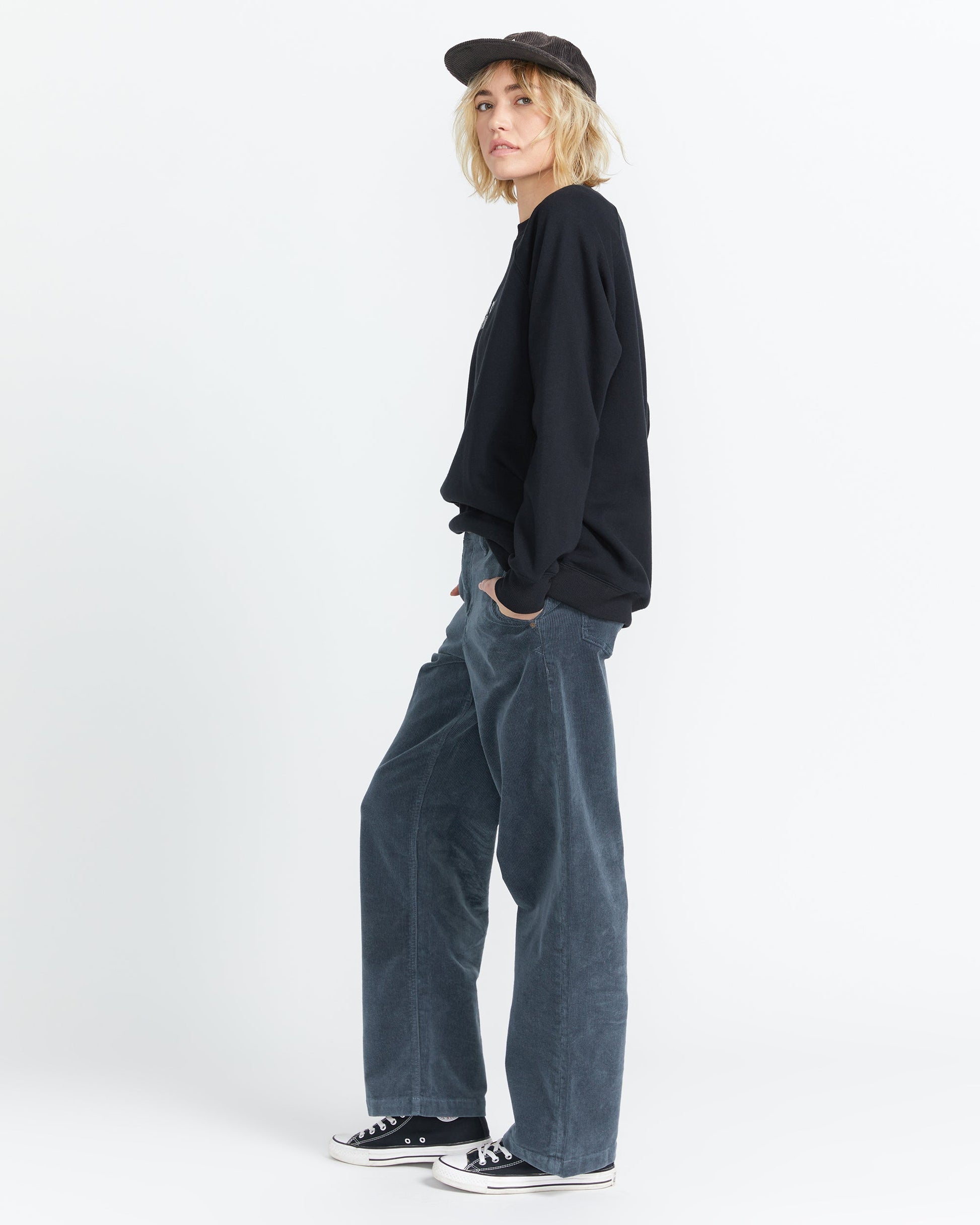 • Low rise wide leg pant