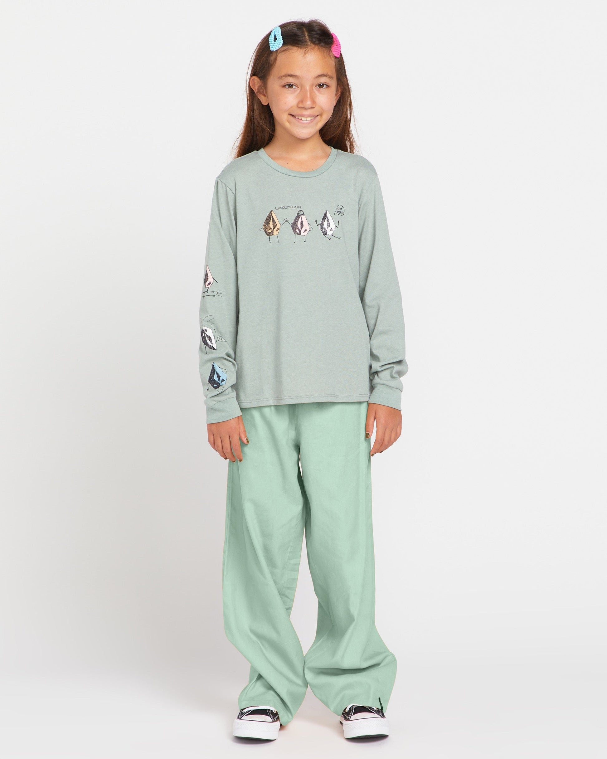 Don't let cooler temps slow her down. She'll stay warm, comfortable, and so Stoked in this supremely soft and stylish long sleeve tee for big girls. Screen-printed graphics at the chest and back add a playful, Made-From-Stoke vibe that's perfect for school, play, or anywhere your kiddo's adventures take her. Featured here in blue.