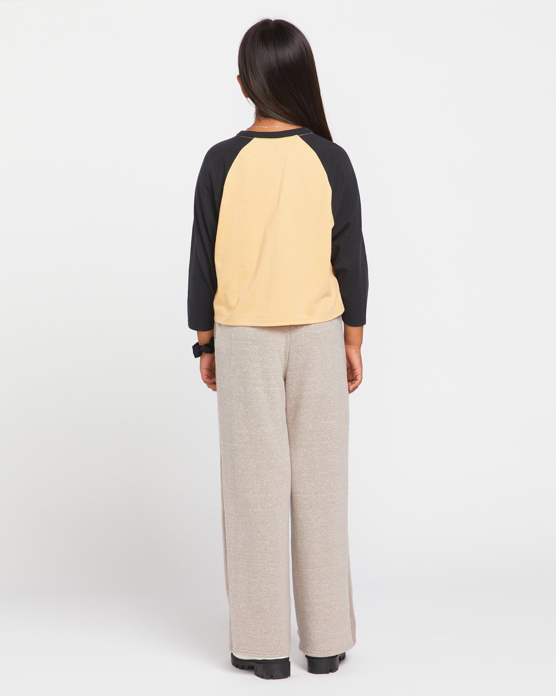 • Long sleeve raglan with color blocked sleeves and neck binding