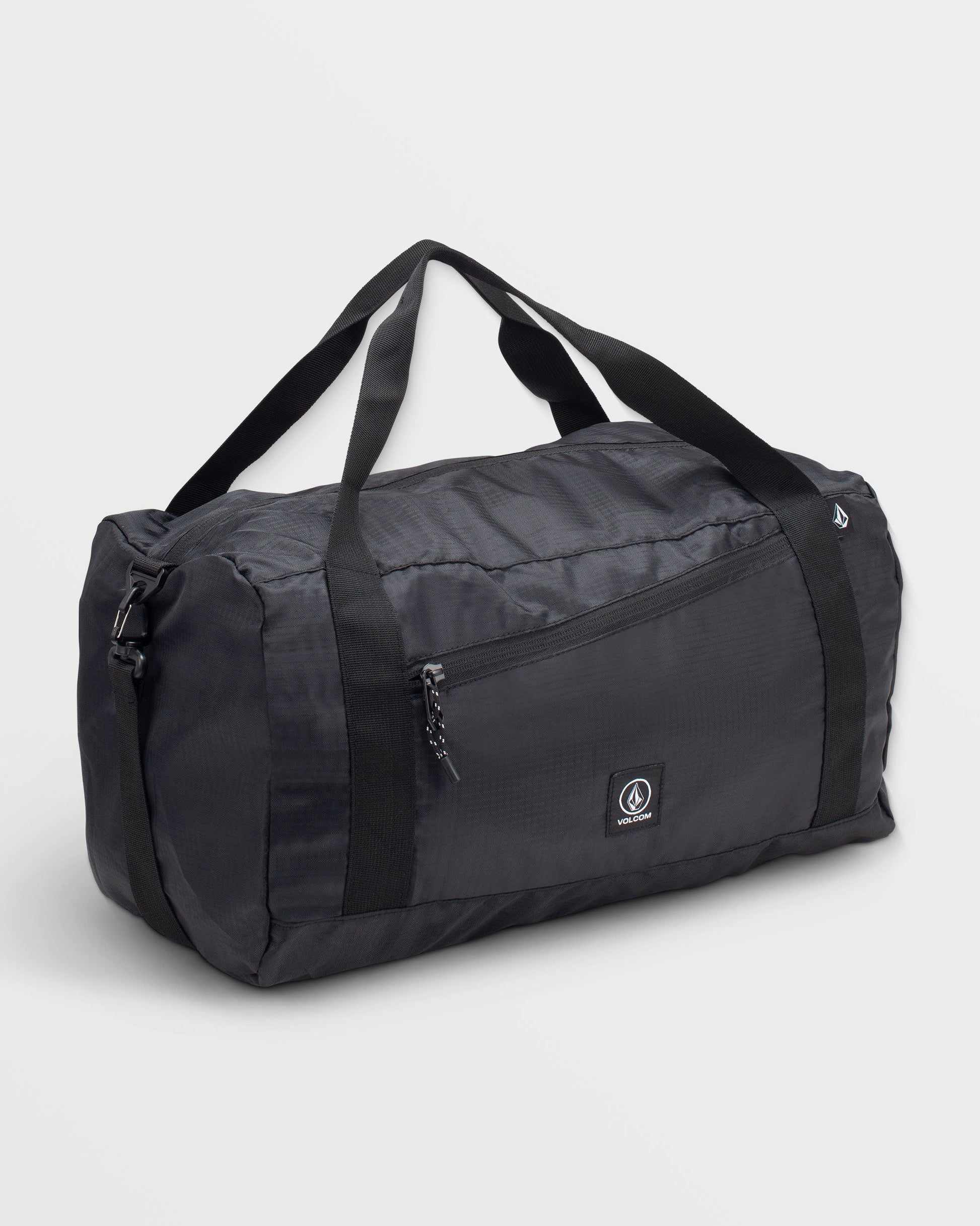 You never knew you needed one, until you did. The Packable Duffel is a lightweight and versatile duffel bag that packs itself into a compact carrying case. Perfect for on-the-go extra storage. It features a large main compartment and front zip pocket, it's spacious enough to carry all your essentials. Constructed from lightweight polyester ripstop with 2x polyurethane backing, ensuring durability. When packed away, the case features a plastic clip for convenient attachment options. Featured here in black white.