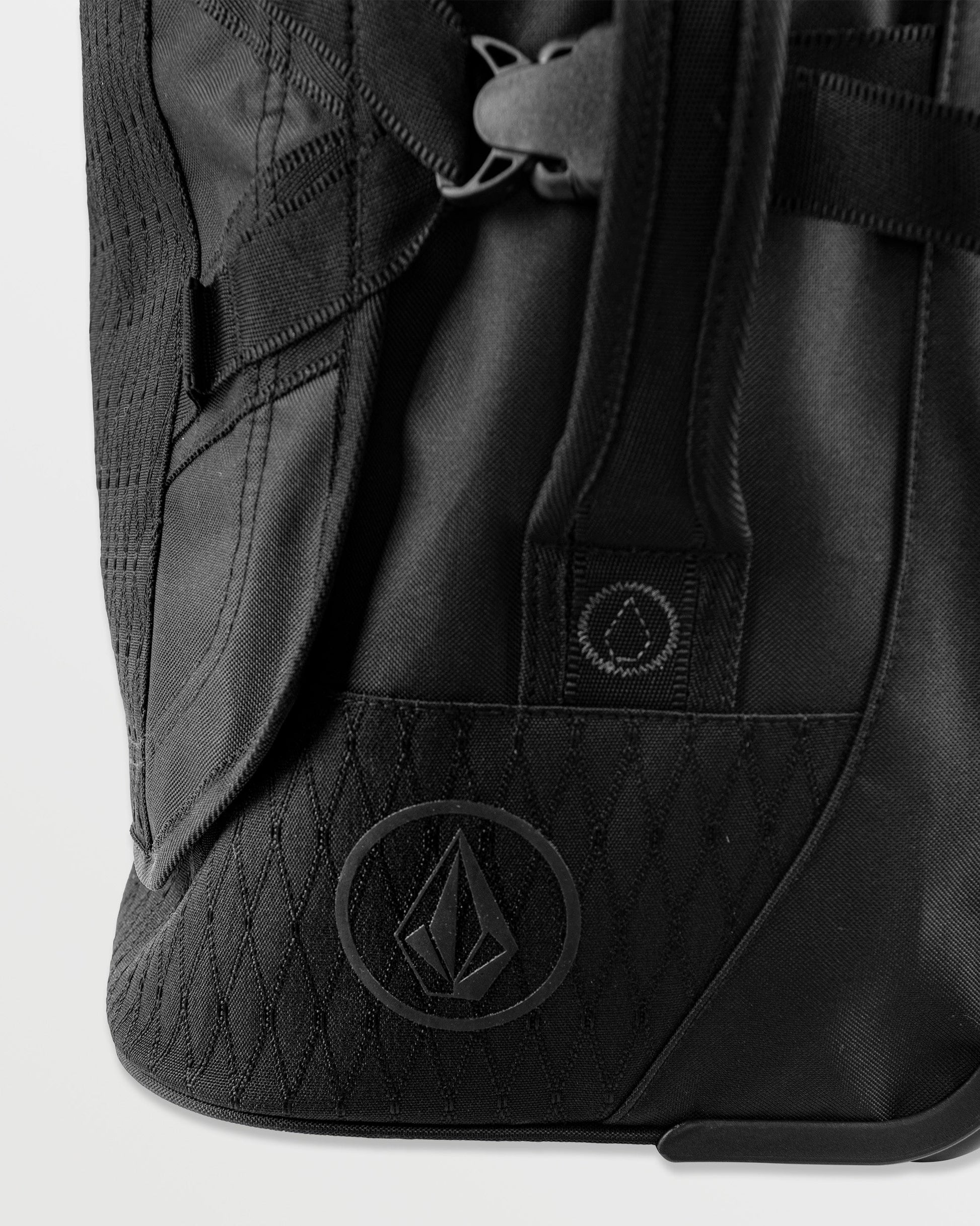 Conquer the skies with the "V" Chamber Carry-On, a 45.5L powerhouse jam-packed with savvy features. Boasting a shiny 600D polyester build, this sleek suitcase offers a spacious main compartment, handy zippered pockets, and a sturdy skate wheel chassis for effortless navigation. With its molded logo and neoprene-lined handles, this carry-on is both stylish and durable. Featured here in black. Featured here in black.