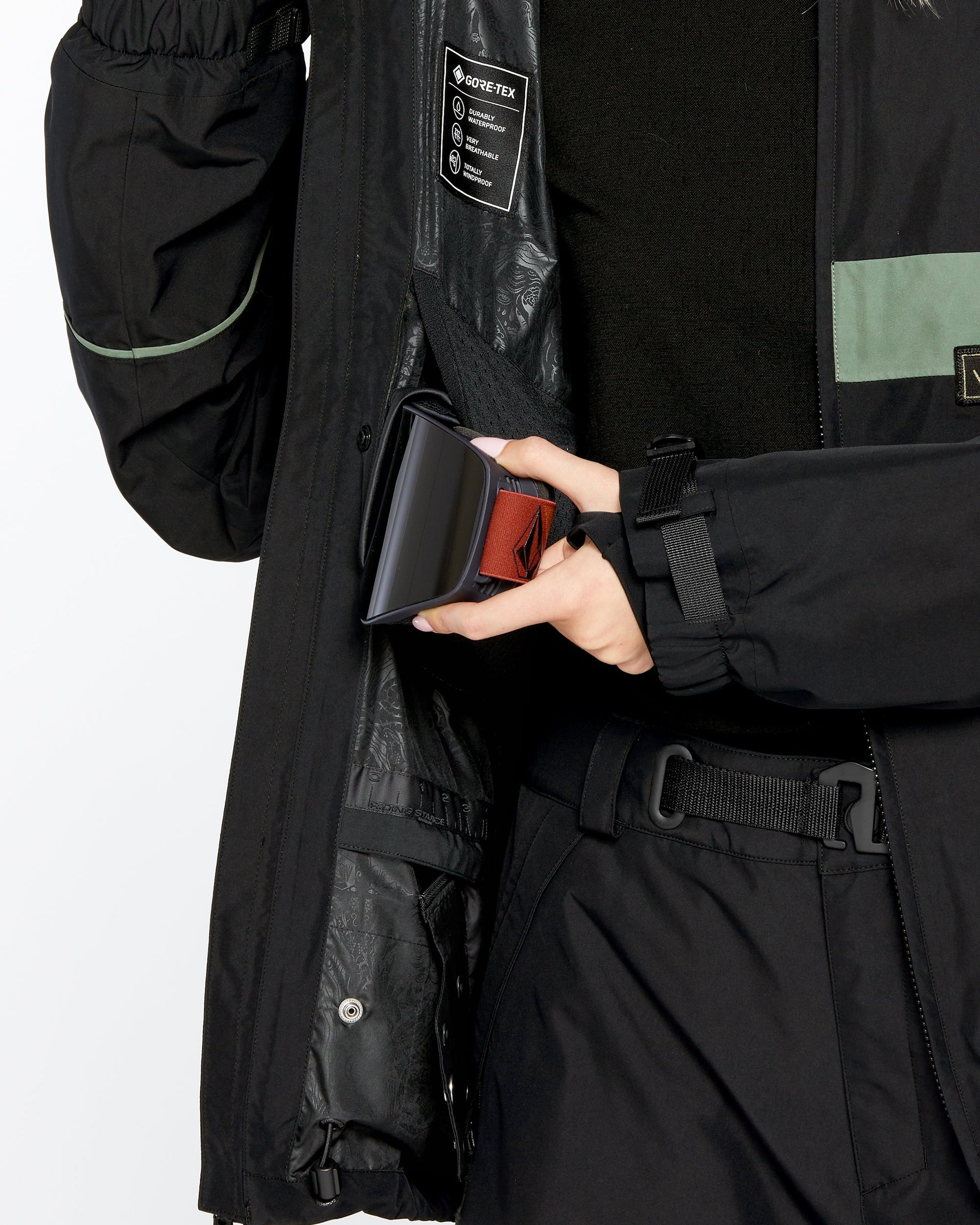 "V" team rider Desiree Melancon embodies the Stone to the core. So for our signature collab, we wanted to bring you a high-quality collection with hard-hitting style. And that's exactly what we did with the DLM Gore-Tex Jacket. Expertly waterproofed with GORE-TEX Guaranteed to Keep You Dry? technology and detailed with zippered side vents, a removable storm hood, and dedicated media pockets, this boxy fit snowboarding jacket is designed with our innovative Zip Tech? Pant to Jacket Interface to keep snow out and your stoke at an all-time high.