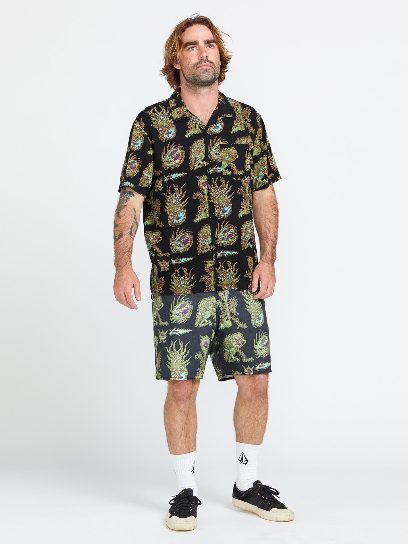 These Featured Artist trunks are more than just swimwear. They are a canvas for the incredible art of Tetsunori Tawaraya. Our Stone Hemp Stretch blend of Repreve Recycled fiber, polyesters, cotton, and elastane, make these swim trunks comfortable with a flexible fit. Convenient side and rear pockets make these swim shorts functional when not in the water too. But what truly sets them apart is the stunning artwork of Tetsunori Tawaraya, a Japanese artist and musician whose style is infectious and inescapable, blending bright pops of color with detail print work and imaginative creatures from somewhere beyond your wildest science fiction imagination.
