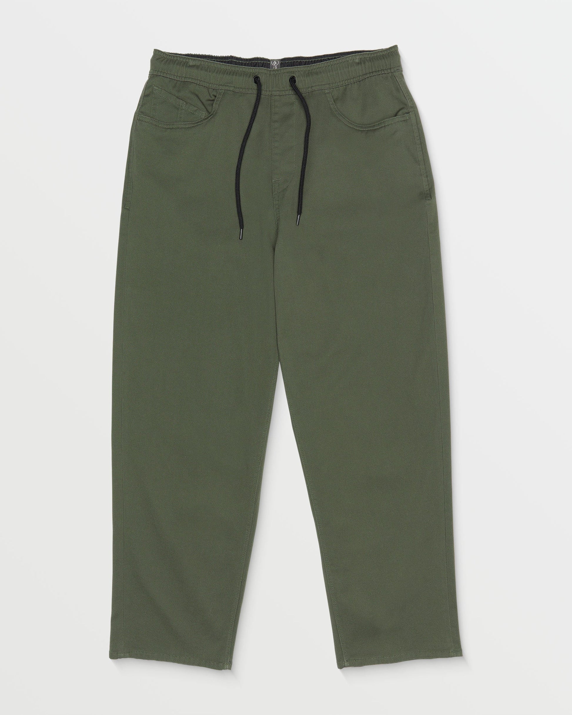 The Freazy Loose Fit Pants bring the comfort of our elastic waist to a classic cotton-blend pant. Featuring a loose tapered fit with a little bit of stretch to the fabric and finished off with signature "V" details. Featured here in squadron green.