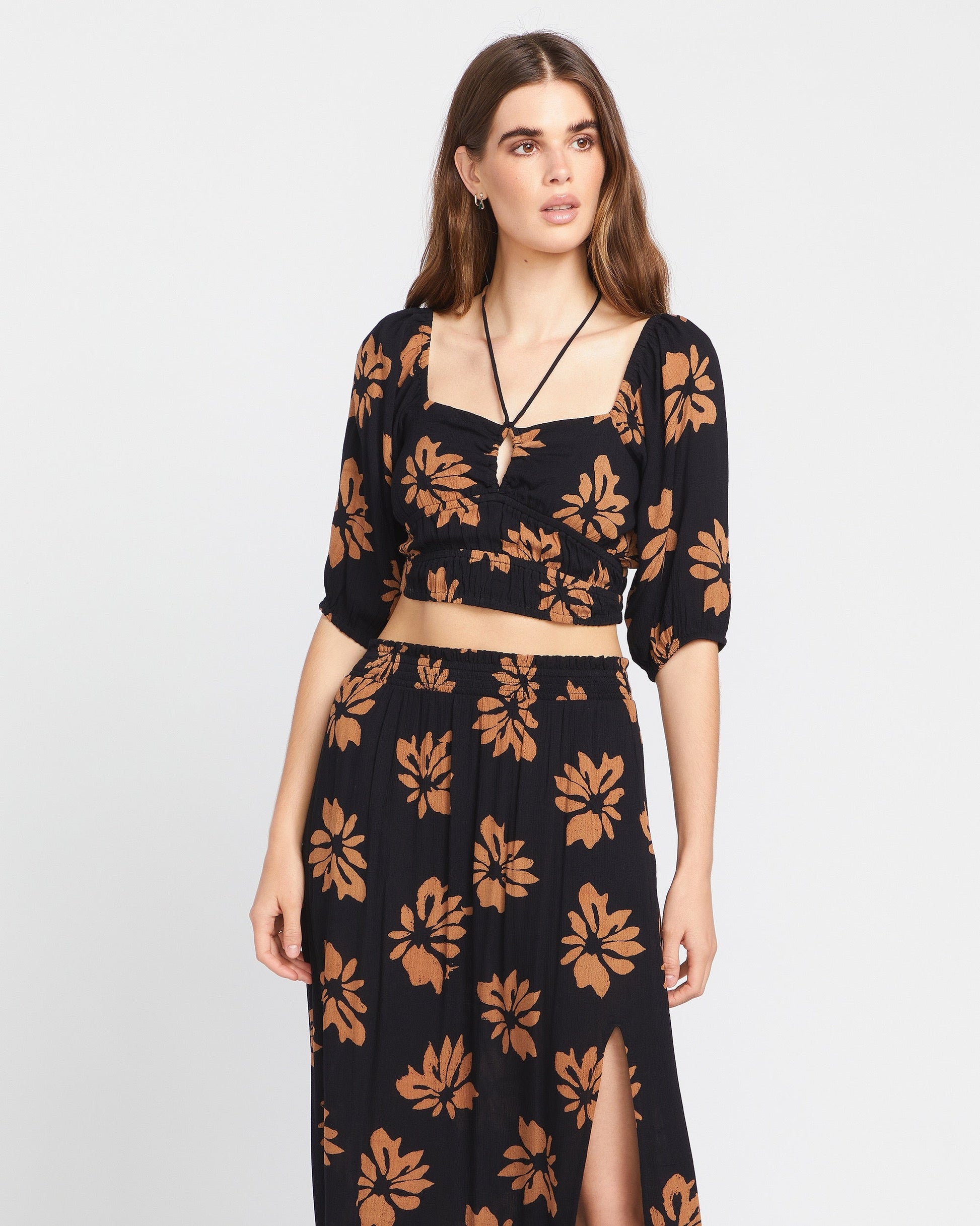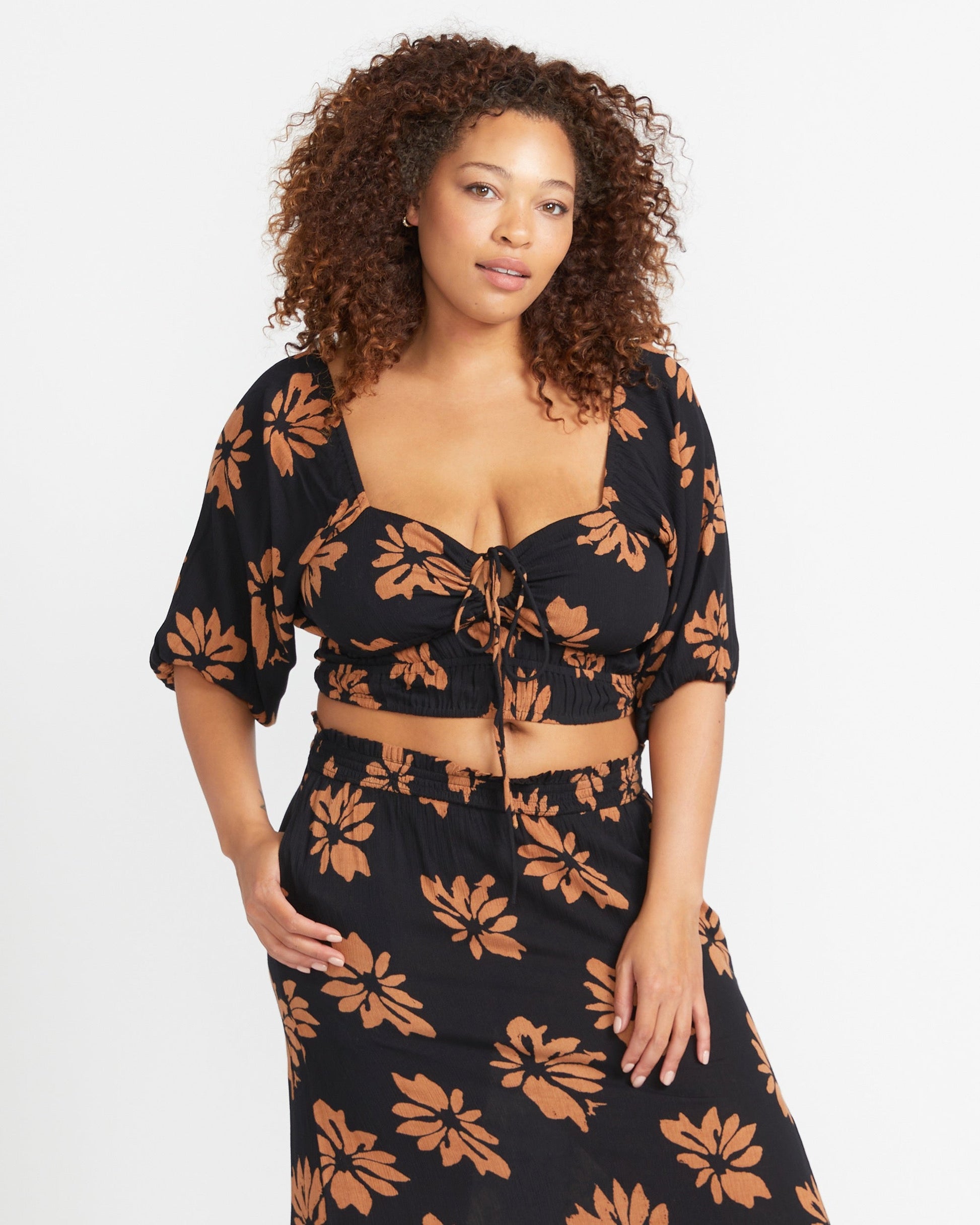 • Allover printed fitted top with elasticated short sleeves