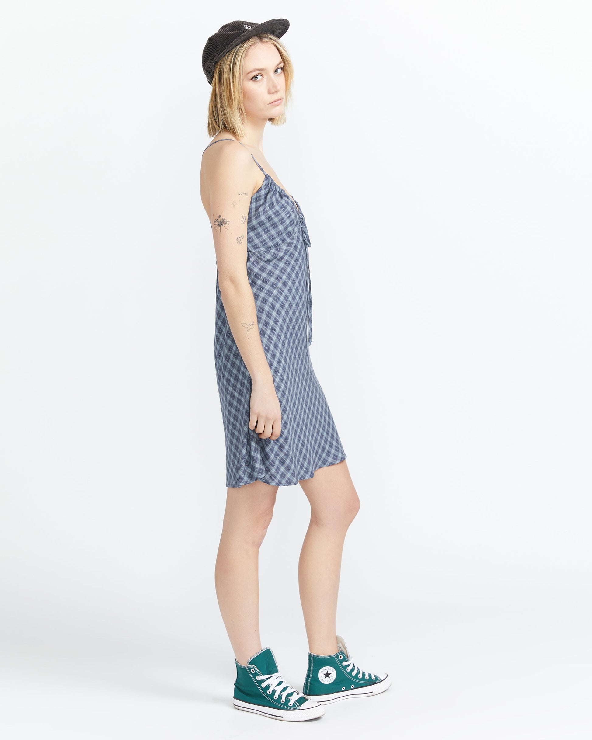Slip into effortless style with the Haute Embers Dress. This plaid viscose number hugs your curves with its bias cut and body-skimming fit. Adjustable straps and a drawcord chest let you customize your look, while the low back adds a flirty touch. From beach to bar, this versatile piece has you covered. Featured here in vintage navy.