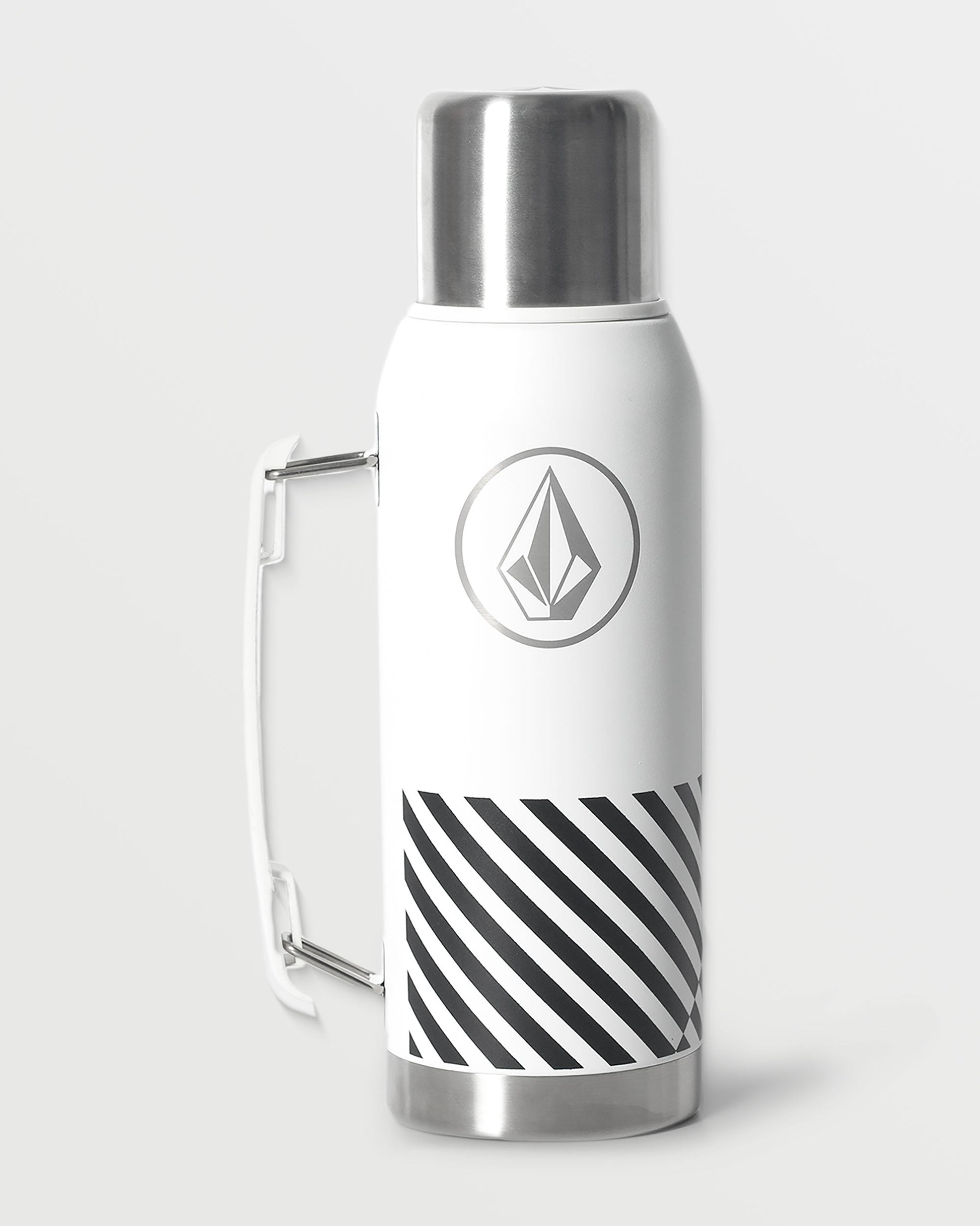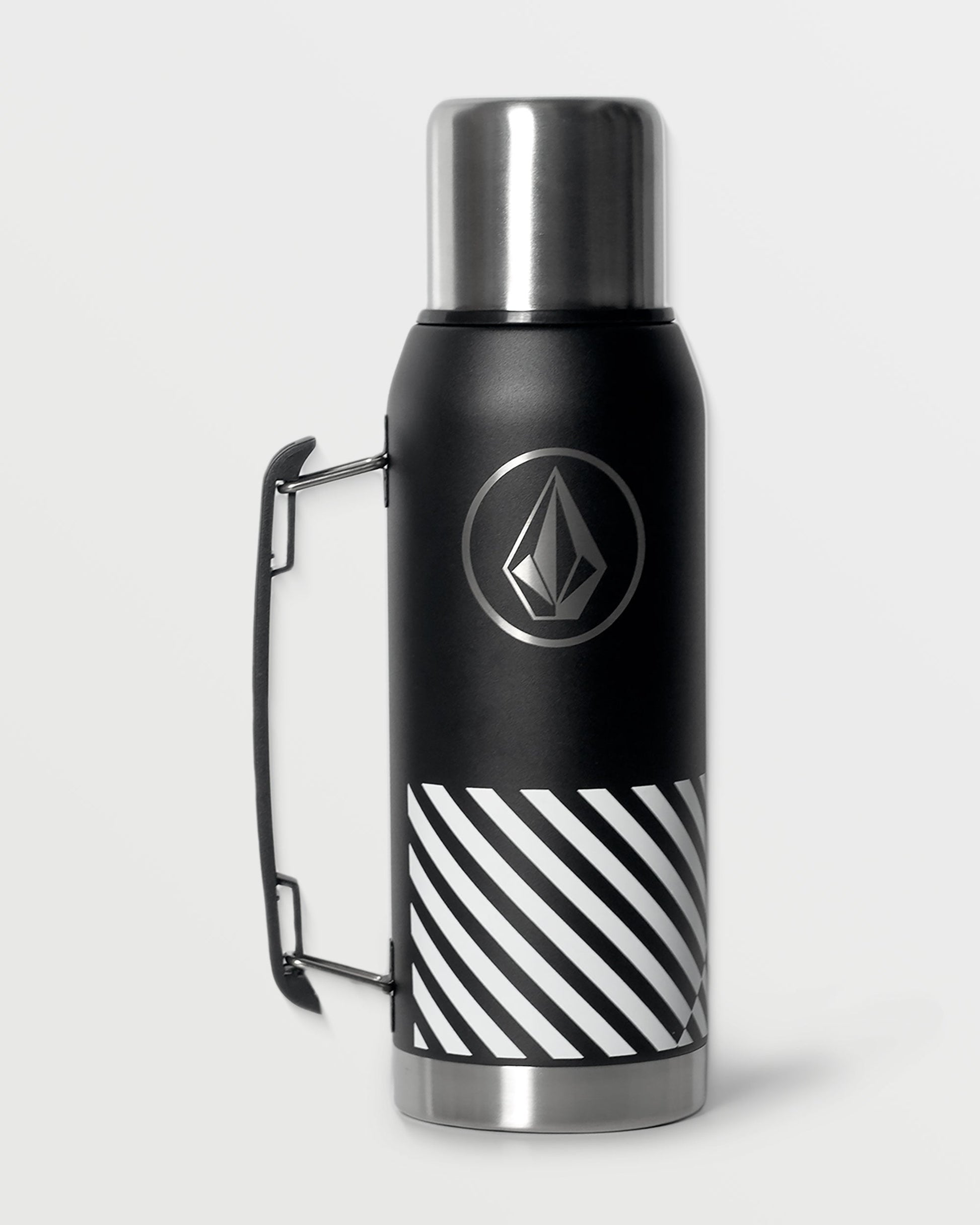 The Heavy Metal Thermal Bottle is a rugged, high-performance companion that keeps your drinks piping hot or ice-cold all day long. With a roomy 35oz capacity, double-wall vacuum insulation, and a wide top for easy ice loading, it's the ultimate sidekick for your outdoor adventures. The stainless-steel construction and laser-etched logo add a touch of industrial style, while the molded carry handle ensures a comfortable carry. This bottle is built to last and keep you refreshed, no matter where the day takes you. Featured here in black. Featured here in black.