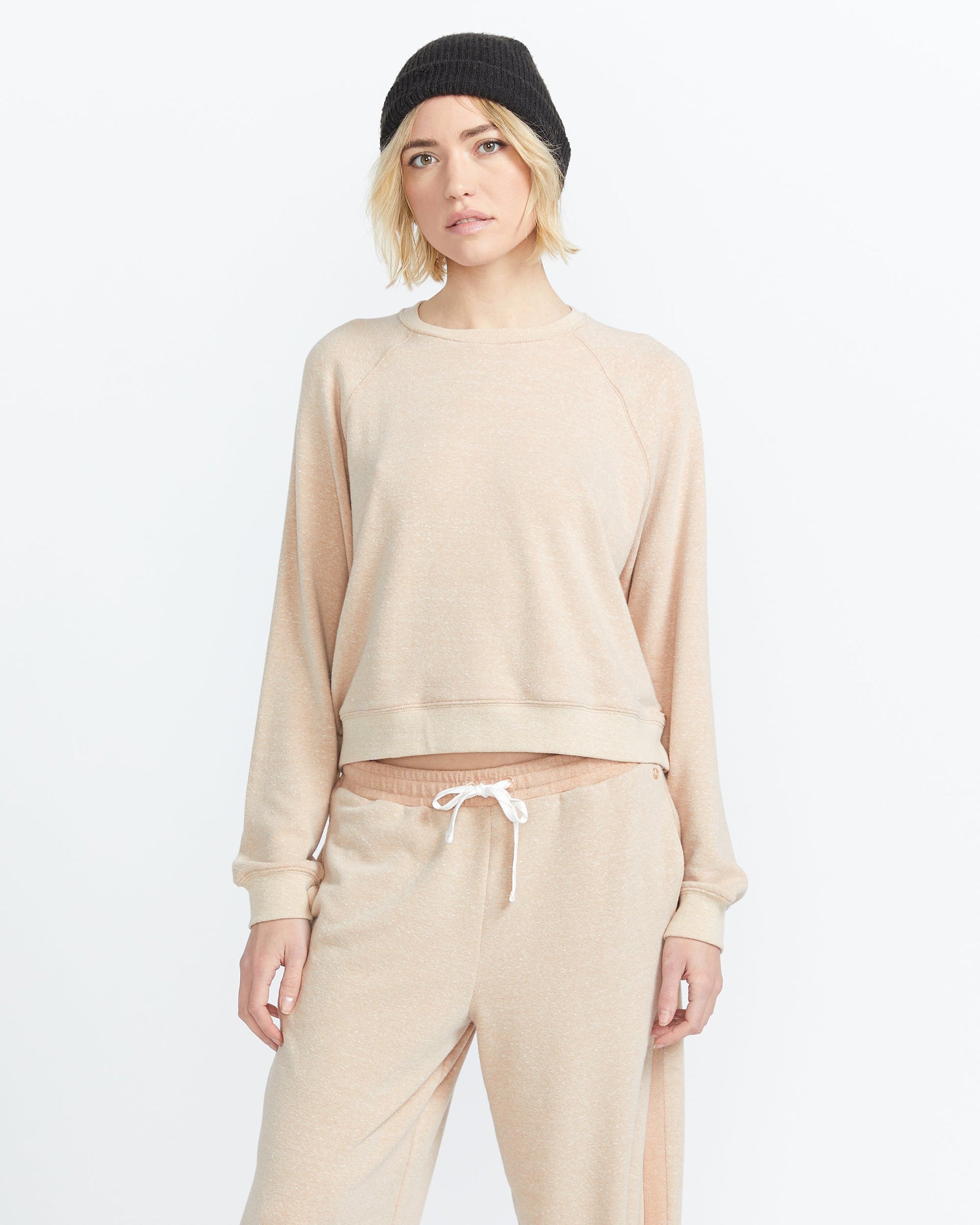 Sink into pure comfort with the Lived in Lounge Frenchie black Raglan Sweatshirt. This soft, cozy fleece features a classic raglan sleeve design and rib trim for a laidback, lived-in feel. The metal badge at the hem adds a touch of streetwear style, while the stretchy, breathable fabric blend keeps you mobile. Whether you're lounging at home or running errands, this versatile sweatshirt will be your new go-to. Featured here in sandstorm.