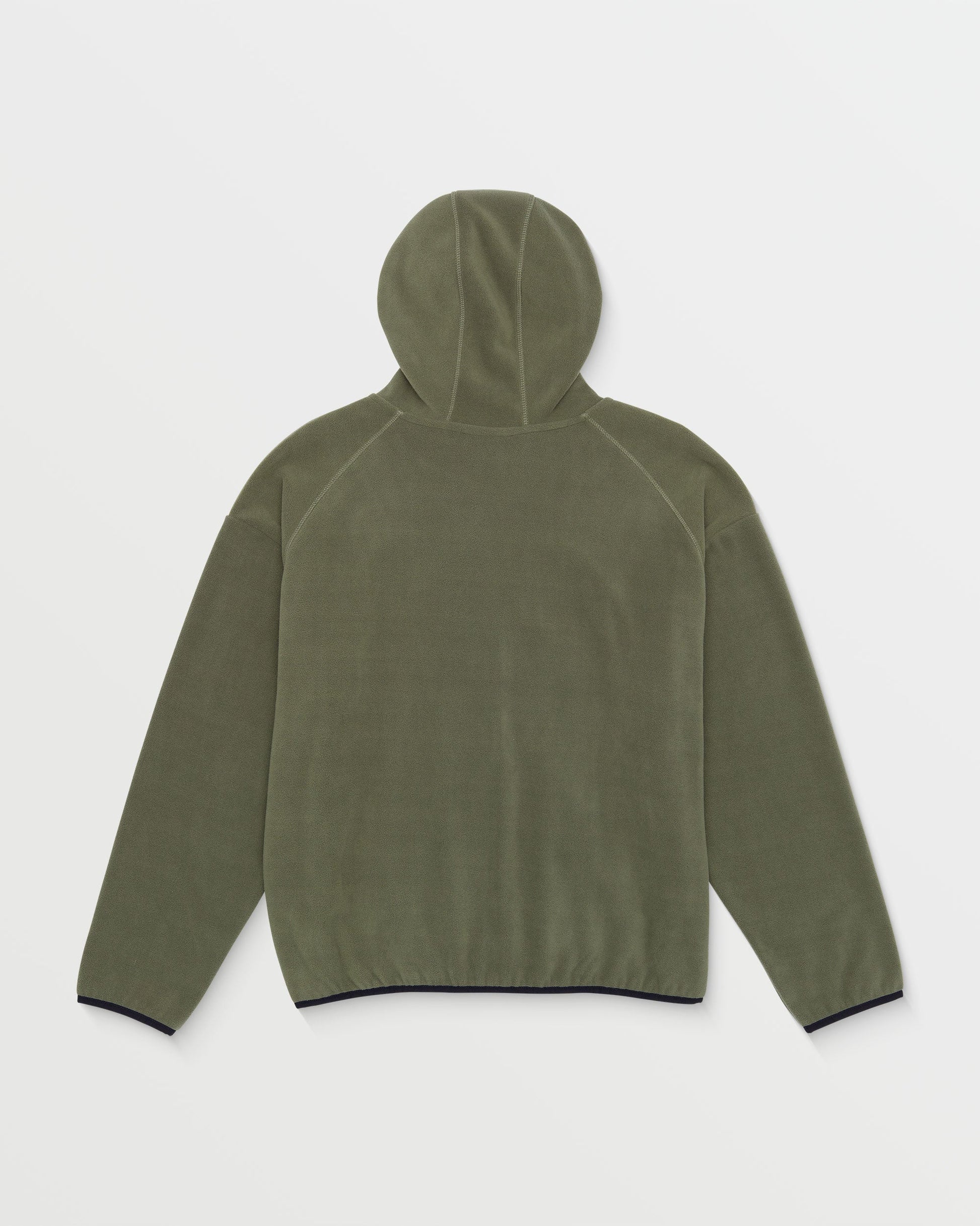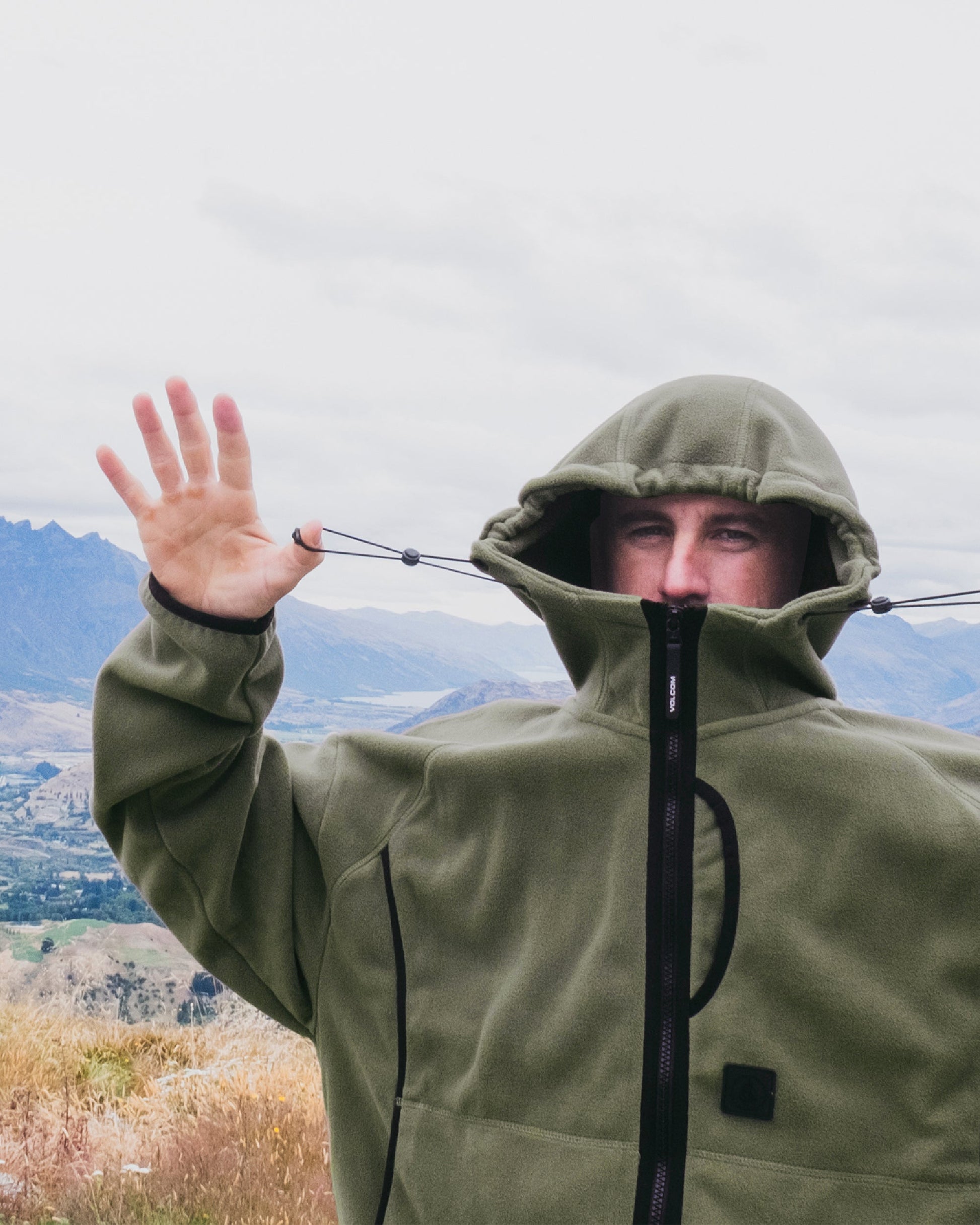 The Nomaa Fleece brings "V" Outdoor tech to a must-have zip-up. Made from partially recycled polyester, we designed hand and chest warmer pockets with unique elastic binding that adds style and functionality in any conditions. Featured here in winter moss.
