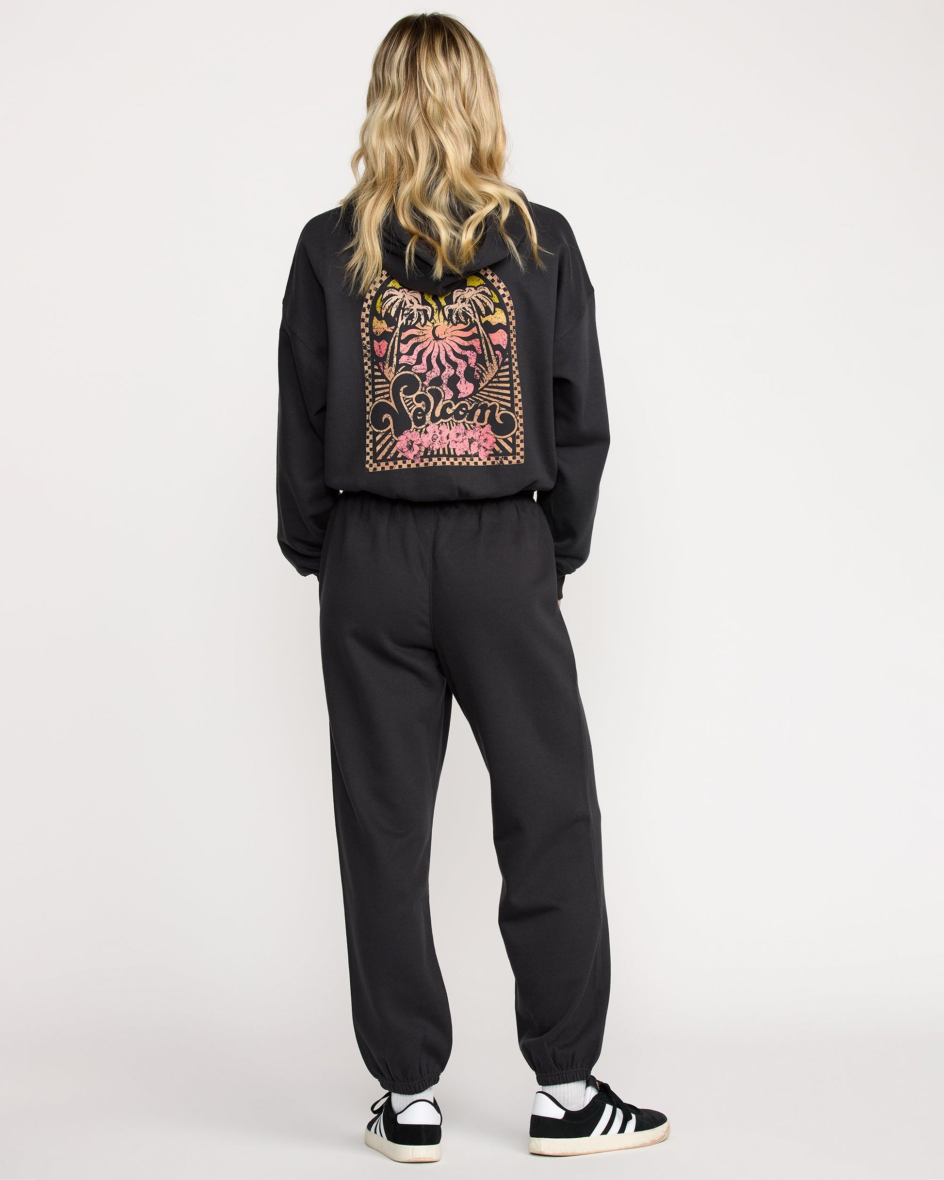 Slip into comfort with the Stone Dream Fleece Pants. The relaxed fit and cotton-polyester blend offer ultimate coziness, while the elastic waist and ankle cuffs give them a trendy jogger look. With a stylish screenprint design, these pants are perfect for lazy days or casual outings. Featured here in black.