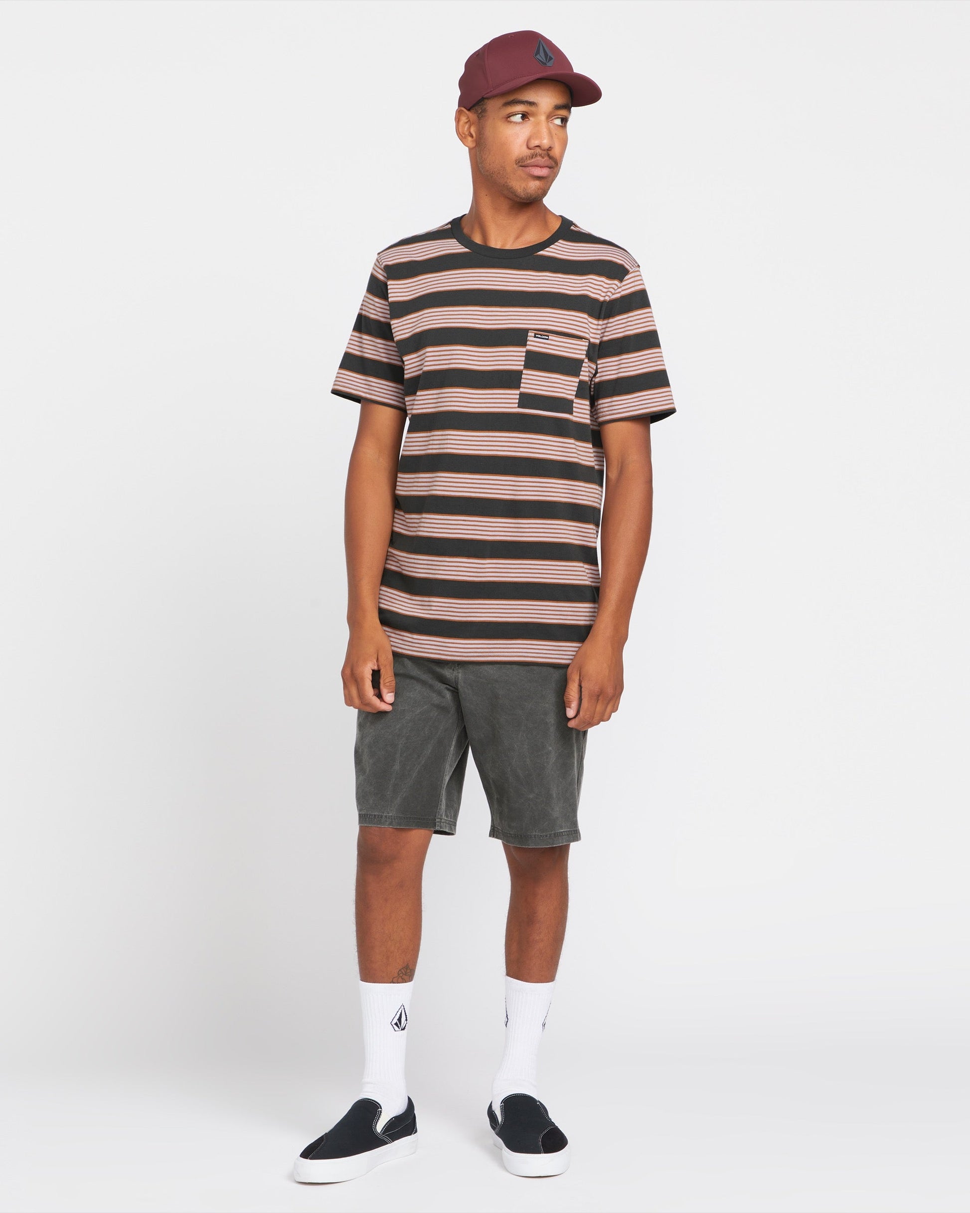 Featuring a yarn-dyed stripe pattern, a left chest pocket, and a bias self-fabric neck tape, this black short sleeve shirt offers a timeless look. Pair it with your favorite denim for a casual-cool vibe that's perfect for any occasion.
