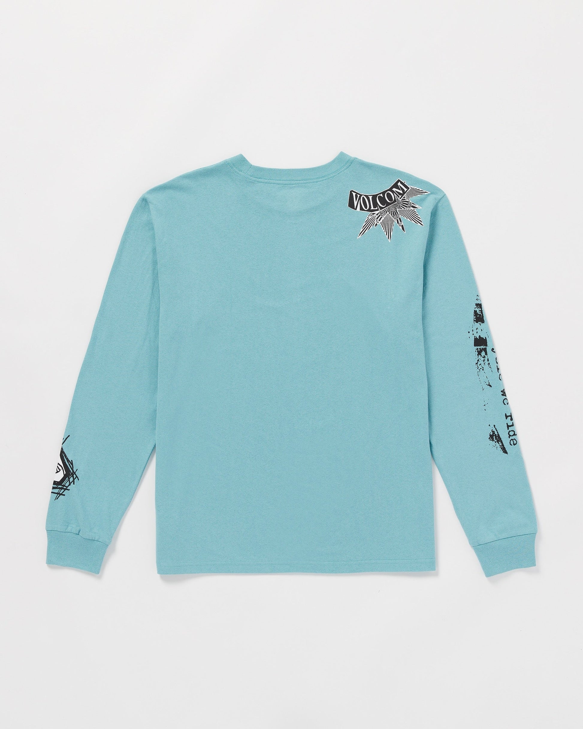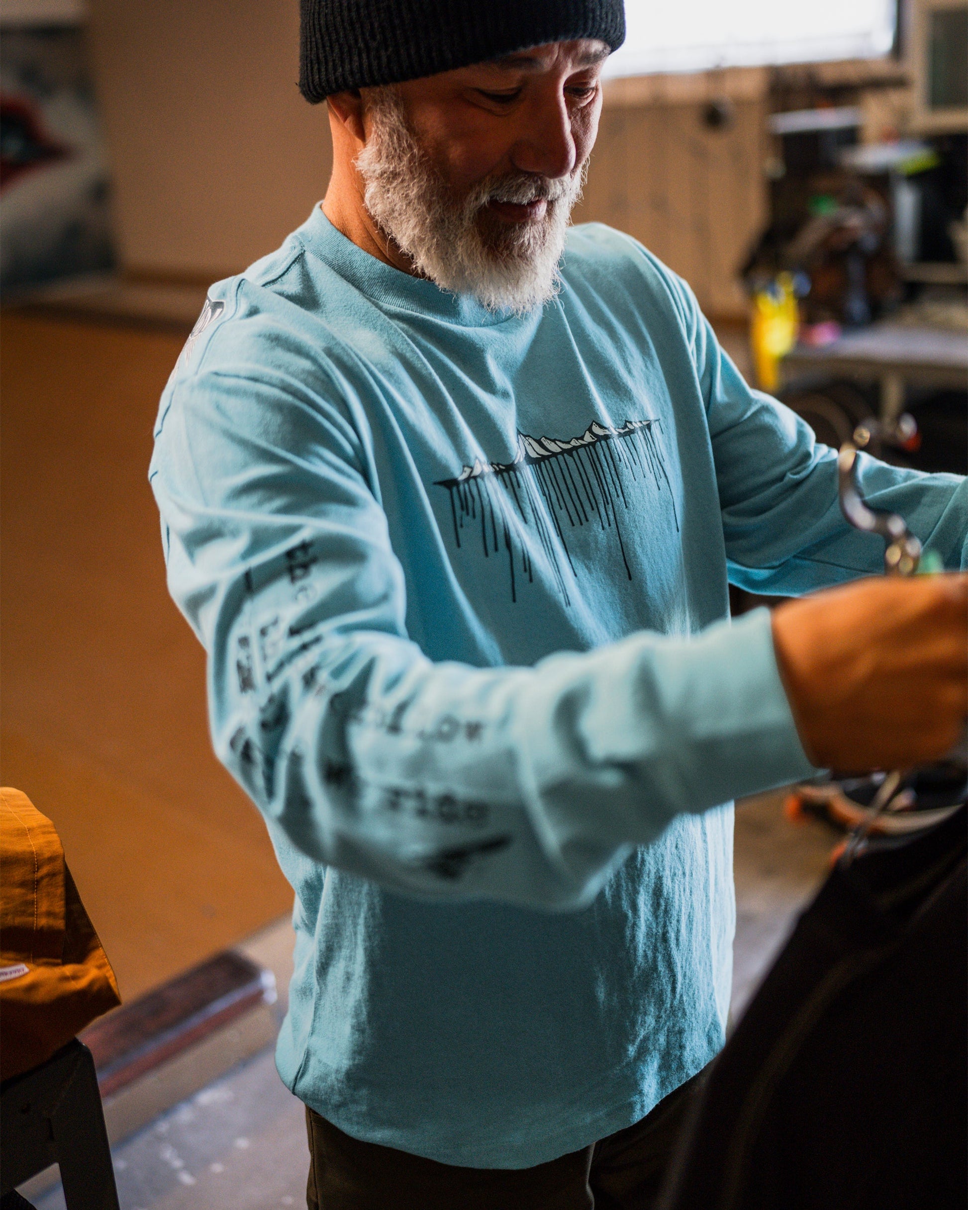 Designed in collaboration with snowboarding legend Bryan Iguchi, you'll enjoy truly unique style and keep the chill off in this blue Tokyo True collab long sleeve tee. With a basic wide fit and screen-printed design, this crew neck tee is perfect for layering or wearing solo.